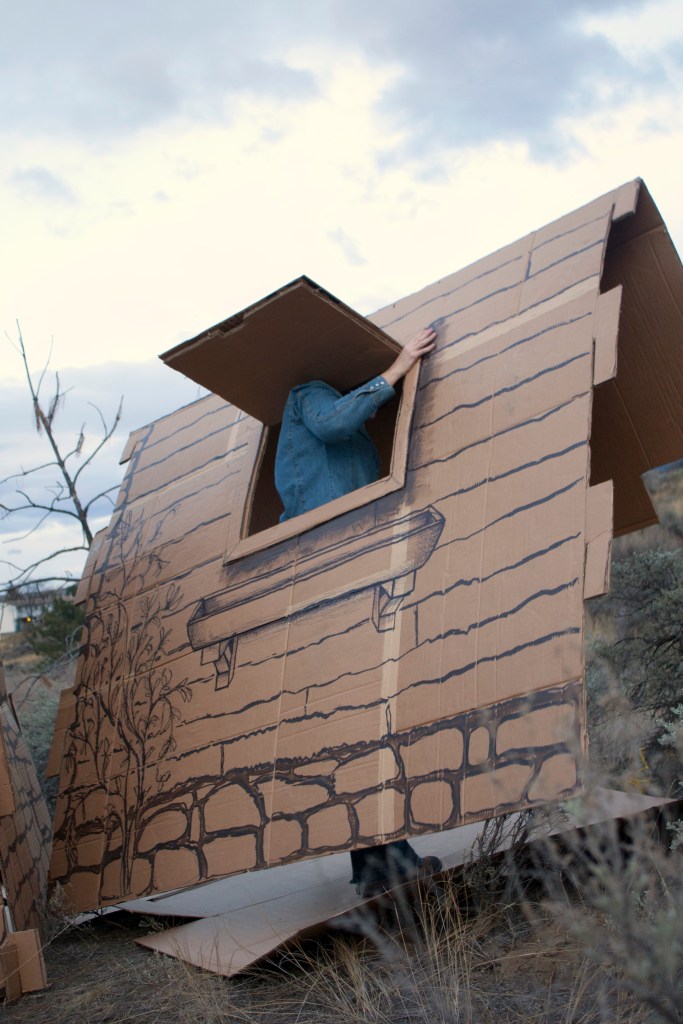 Cardboard Bothy, 2012. Cardboard, and wind, and a little awkward.