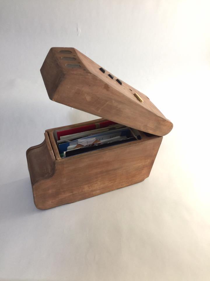 Memento Box, ceramic 2014. Hinged box contains 18 catalogues from each class member. Ceramic, 2014.