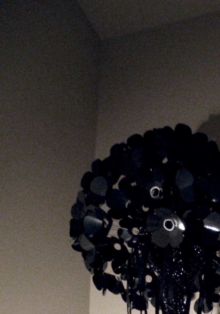 Dandelion, 2009. *SOLD* 5 1/4″ floppy discs, video and cassette tape, wire, video case. 3’x3’x7′.