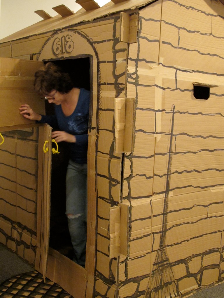Cardboard Bothy, 2012. Carboard. 5’x6.5’x8′. Tab and slot construction.