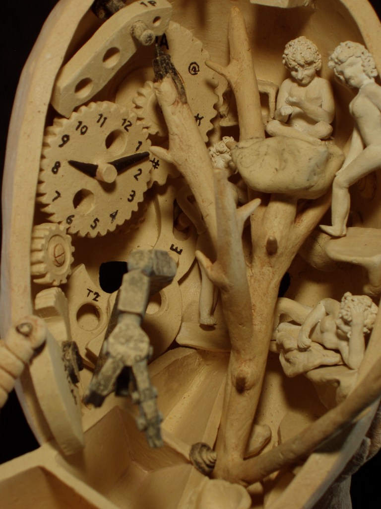 Obsessive Analytical Mind of an Insecure Artist, detail, 2008. Ceramic. Introspection of the two brain hemispheres at work, logic and creativity. 33.0 x 20.3 x 26.7 cm